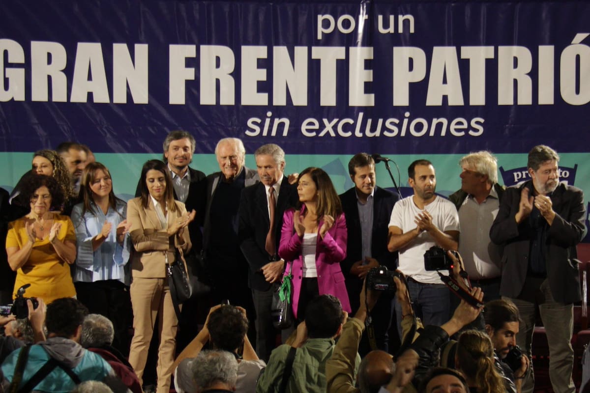 En el aula magna de la Facultad de Medicina de la UBA, Solanas reclamó "la unidad" de todo el peronismo, en un mensaje por elevación a Roberto Lavagna, Sergio Massa y Juan Manuel Urtubey. Por ello, con un cartel detrás de su recién lanzado "Gran Frente Patriótico, sin exclusiones", exclamó que "no cabe duda de que el enemigo principal es Cambiemos y Mauricio Macri".